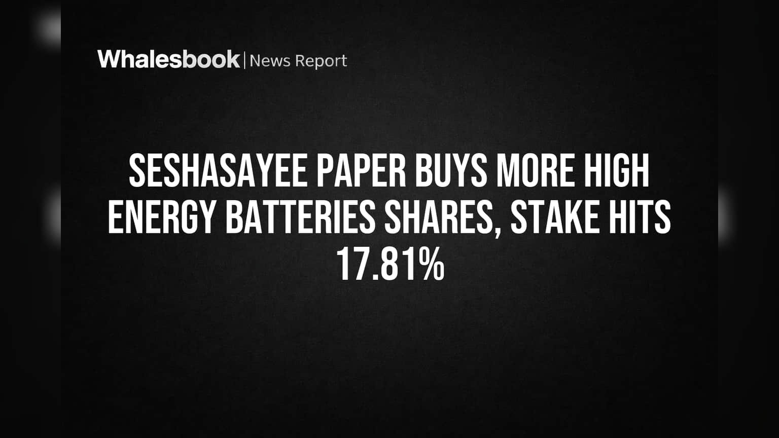Seshasayee Paper and Boards Limited's recent purchase of 1,092 shares in High Energy Batteries (India) Limited on March 24, 2026, has increased its stake to 17.81%. This incremental acquisition signifies continued strategic interest from the paper manufacturer in its group affiliate, a company specializing in defense batteries.