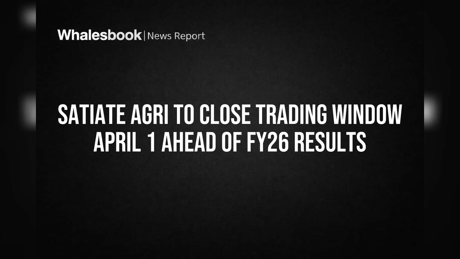Satiate Agri Limited has announced it will close its trading window from April 1, 2026. This measure is taken ahead of the company's audited financial results for the fiscal year ending March 31, 2026.