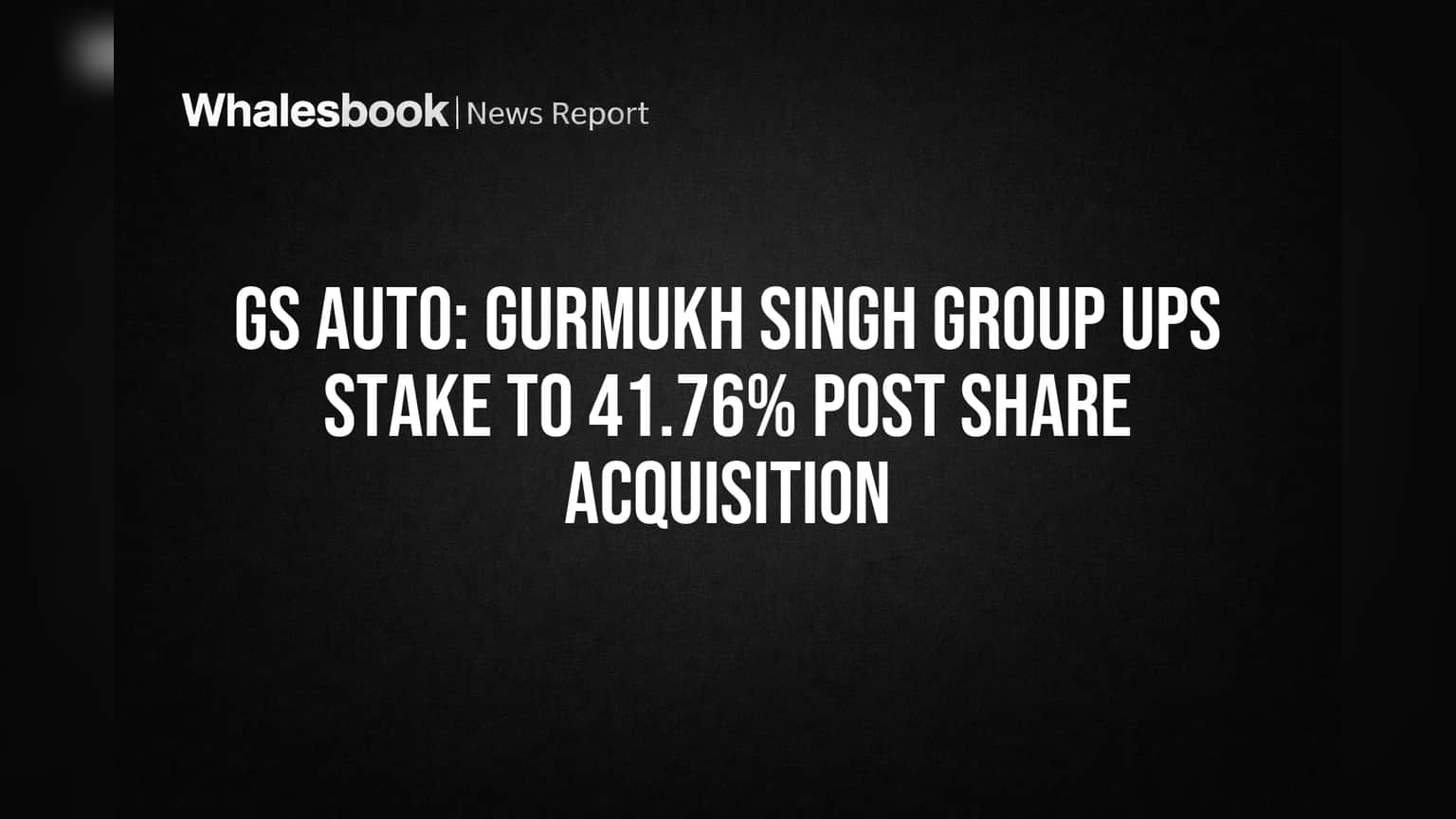 Gurmukh Singh International Limited and its associates acquired 3,101 shares on March 24, 2026. This brought their total shareholding to 60,61,641 shares, representing 41.76% of the company's equity. GS Auto International's total equity share capital stands at Rs. 7,25,72,900, comprising 1,45,14,580 equity shares of Rs. 5/- each. The transaction was reported under SEBI (Substantial Acquisition of Shares and Takeovers) Regulations, 2011.
