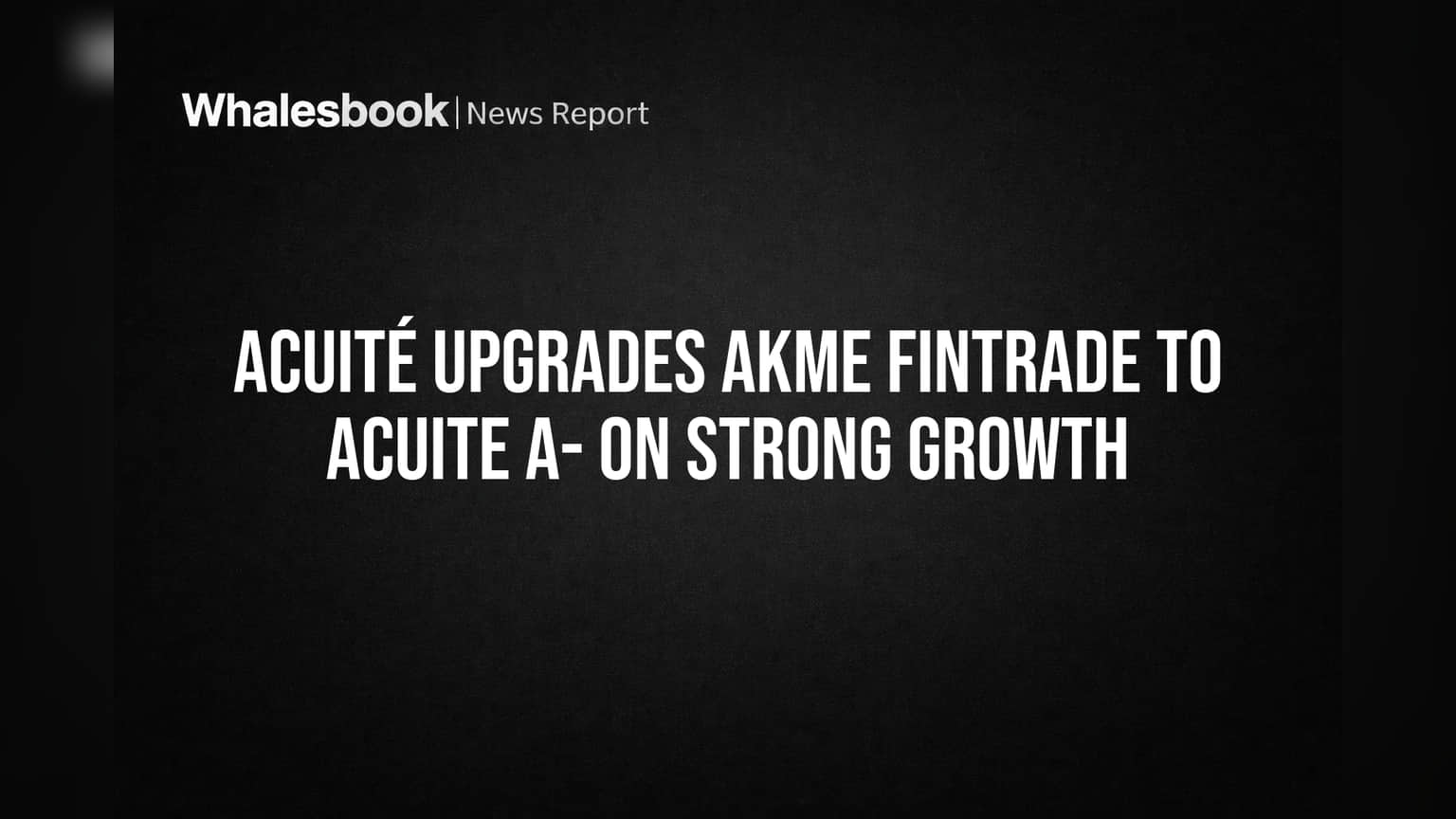 Acuité Ratings has upgraded Akme Fintrade India Ltd (AFIL) to 'ACUITE A-' for its long-term and short-term debt facilities, citing the non-banking finance company's (NBFC) robust growth and financial improvements. The upgrade impacts approximately ₹855 crore of the company's outstanding debt instruments.