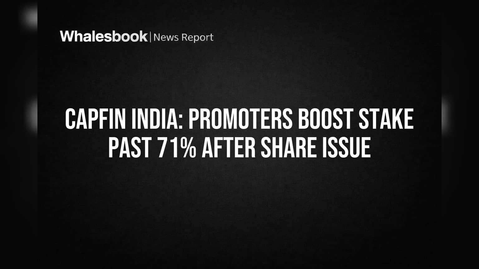 - The promoter group, led by Abhishek Narbaria and Umesh Kumar Sahay, now controls over 71% of Capfin India's voting capital.