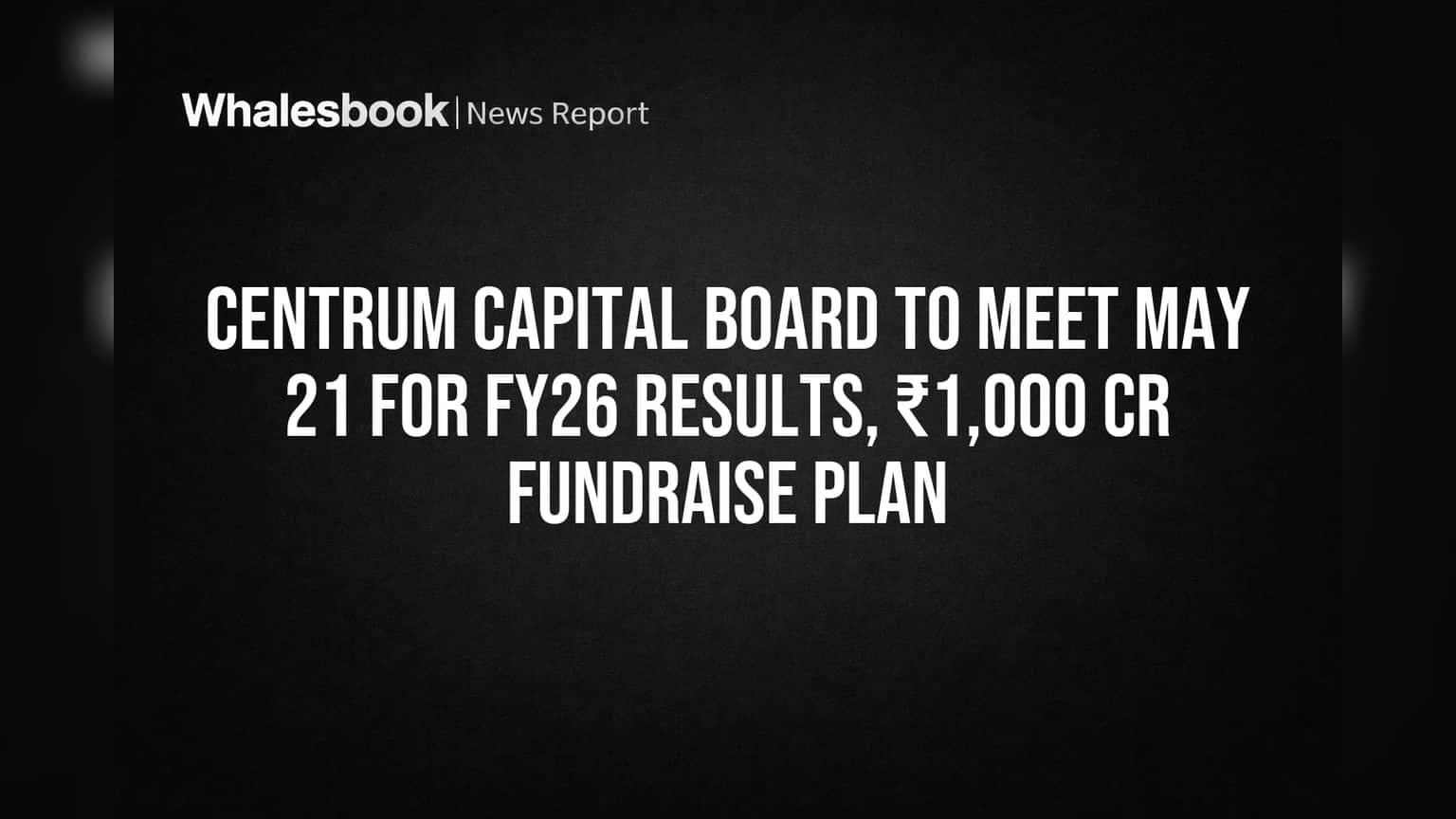 Centrum Capital's Board of Directors will convene on May 21, 2026, to approve audited FY26 financial results and consider a plan to raise up to ₹1,000 crore.