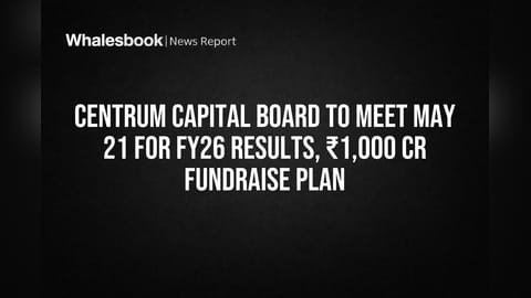 Centrum Capital Board to Review FY26 Results, ₹1,000 Cr Fundraise on May 21
