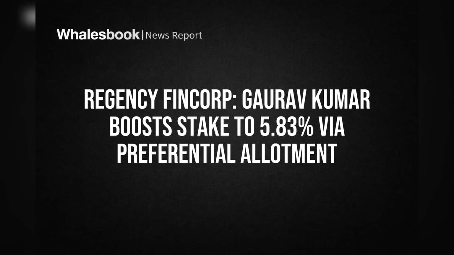 Regency Fincorp Sees Stake Boost as Gaurav Kumar Acquires 1.98 Million Shares