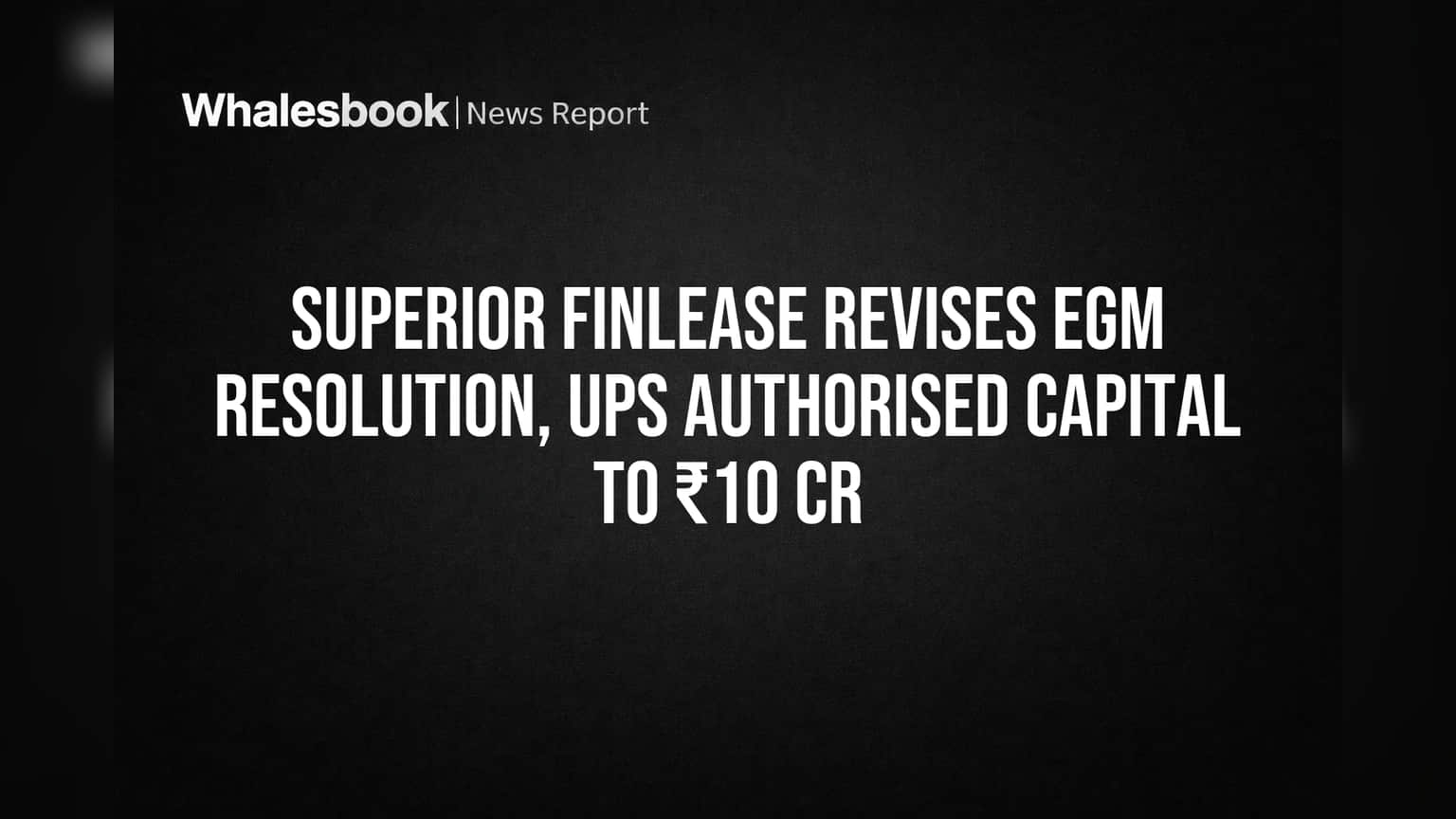 Superior Finlease Limited has revised its earlier shareholder meeting resolution, amending the size of its preferential issue to ₹0.78 crore and substantially increasing its authorised share capital to ₹10 crore. The company issued a correction notice on March 27, 2026, addressing a factual error in its previous filing.
