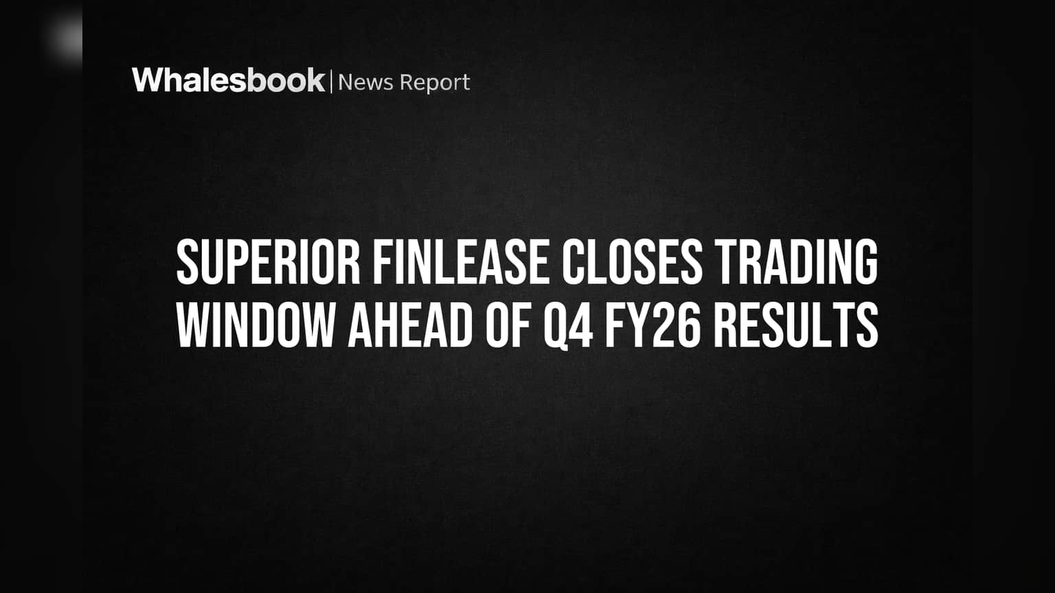 Superior Finlease Limited will close its trading window for designated employees and directors starting April 1, 2026. The window will remain shut for 48 hours after the company announces its audited financial results for the fourth quarter of fiscal year 2026 (Q4 FY26). This is a standard procedure required by SEBI (Prohibition of Insider Trading) Regulations, 2015, to prevent insider trading.