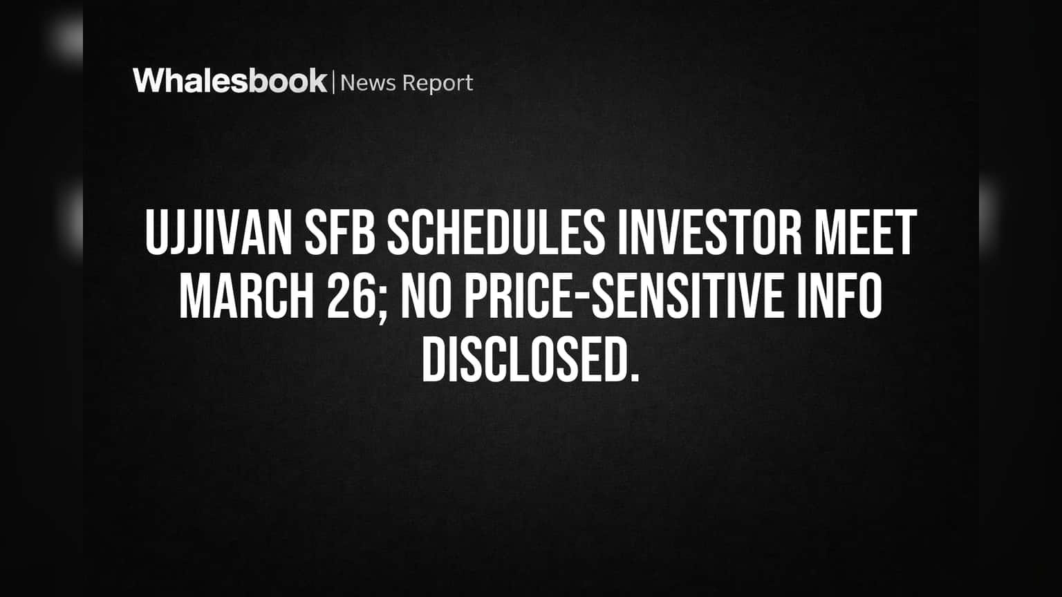 Ujjivan Small Finance Bank Schedules March 26 Investor Meeting