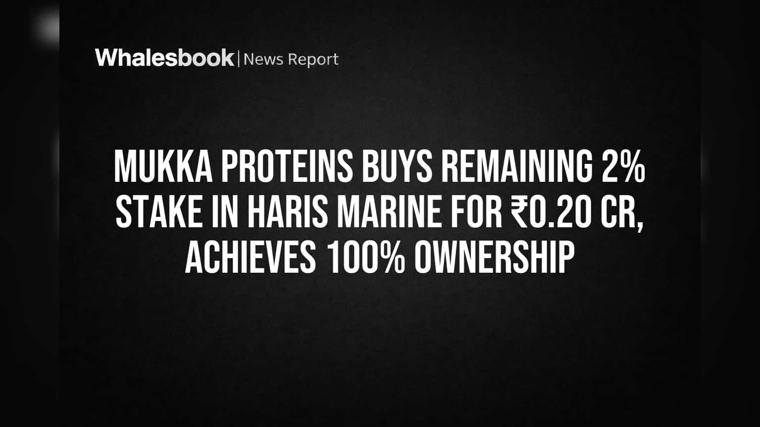 Mukka Proteins Limited announced on March 25, 2026, that it has agreed to purchase the final 2% equity share capital in its subsidiary, Haris Marine Products Private Limited (HMPPL). The transaction, valued at ₹19.64 lakh, will increase Mukka Proteins' stake from 98% to 100%. The agreement was made with the current shareholders: Mr. Kalandan Mohammed Haris, Mr. Kalandan Mohammed Althaf, Mr. Kalandan Mohammad Arif, and Mr. Kalandan Abdul Razak.