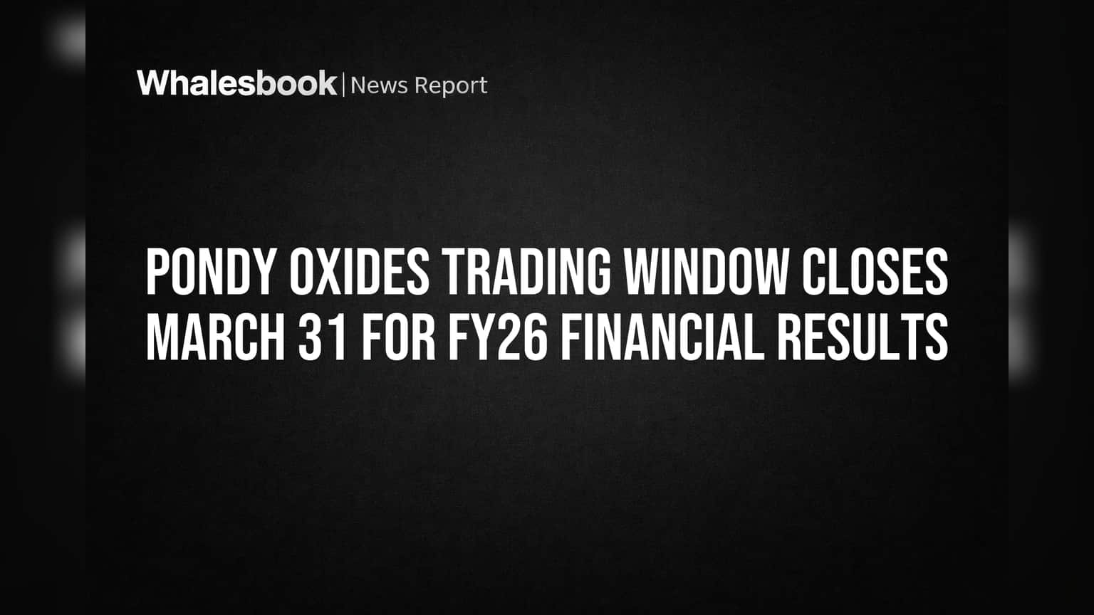 Pondy Oxides & Chemicals Limited will close its trading window starting March 31, 2026, ahead of its audited financial results announcement for the fiscal year ending March 31, 2026. The window will reopen 48 hours after board approval of the results. This measure is a standard regulatory step to prevent insider trading and ensure fair disclosure.