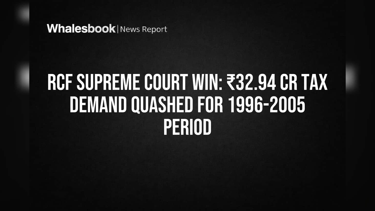 This Supreme Court decision marks a significant legal victory for RCF, effectively relieving the company of a substantial legacy liability. Clearing this ₹32.94 crore demand, which included tax, interest, and penalties, strengthens the company's financial standing and removes an overhang.