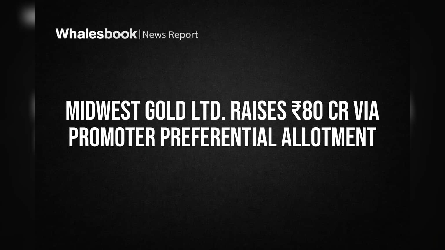 Midwest Gold Limited's Board of Directors has approved issuing 4,00,000 equity shares at ₹2,000 each to its promoters. This transaction raises ₹80 crore and will increase the company's total paid-up equity shares from 1,24,98,696 to 1,28,98,696.