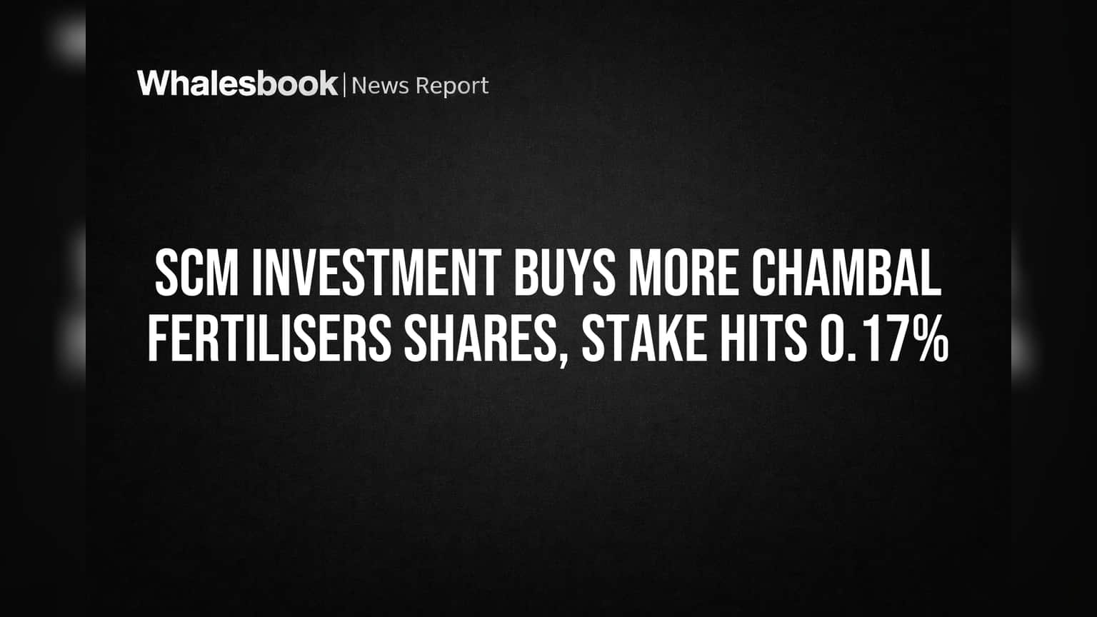 SCM Investment & Trading Co. Ltd. has acquired 1,16,266 additional shares in Chambal Fertilisers & Chemicals Ltd., increasing its total holding to 6,84,998 shares. This move represents 0.17% of the company's diluted share capital.