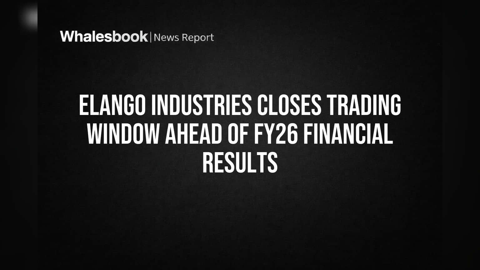 Elango Industries Limited has announced that its trading window for company insiders will be closed. This restriction begins on April 1, 2026. It will remain in effect for 48 hours following the release of the company's audited financial results for the fiscal year ended March 31, 2026.