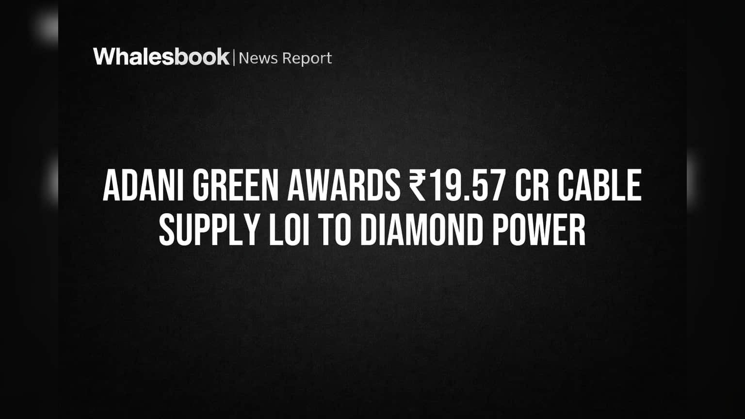 Diamond Power Infrastructure Limited has received a Letter of Intent (LOI) valued at approximately ₹19.57 crore, including GST, for cable supply from Adani Green Energy Limited.