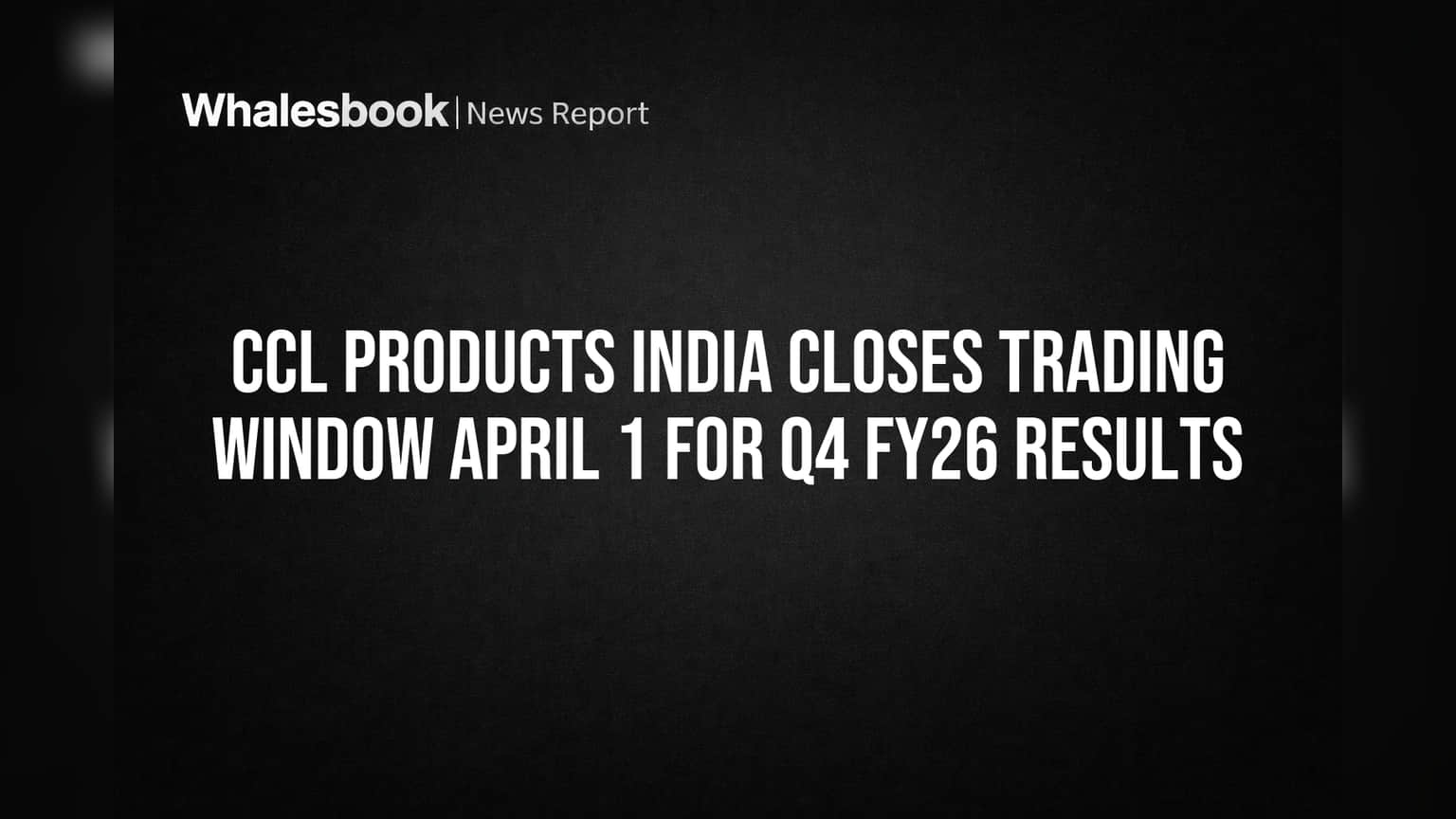 CCL Products India Closes Trading Window for Q4 FY26 Results