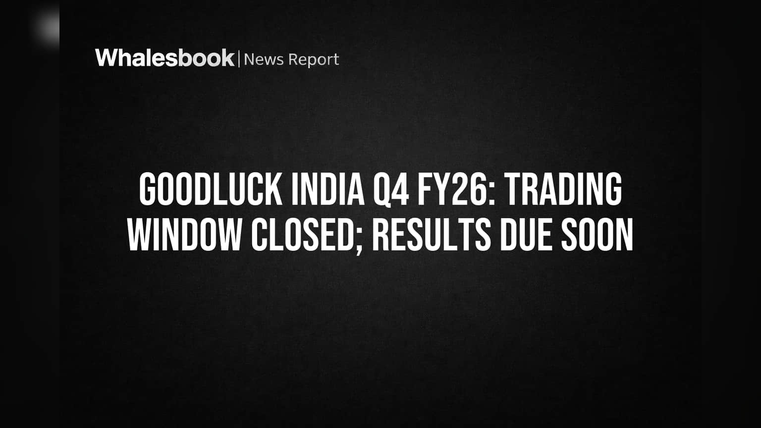 Goodluck India Limited has announced its trading window will close starting April 1, 2026, in preparation for its upcoming audited financial results for the fiscal year ending March 31, 2026. The date for the board meeting to approve these results will be announced later.