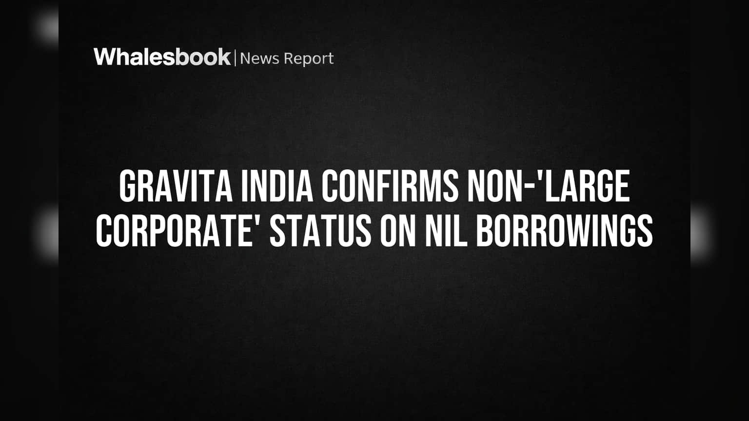 Gravita India Limited announced on April 20, 2026, that it has been confirmed as not being a 'Large Corporate' entity under SEBI regulations. The company cited its outstanding borrowing status as zero as of March 31, 2026. This confirmation is supported by its strong credit ratings, including [ICRA]AA- (Stable) from ICRA Limited and IND AA-/Stable and IND A1+ from India Ratings and Research Pvt Ltd. The classification reference date was March 31, 2026.