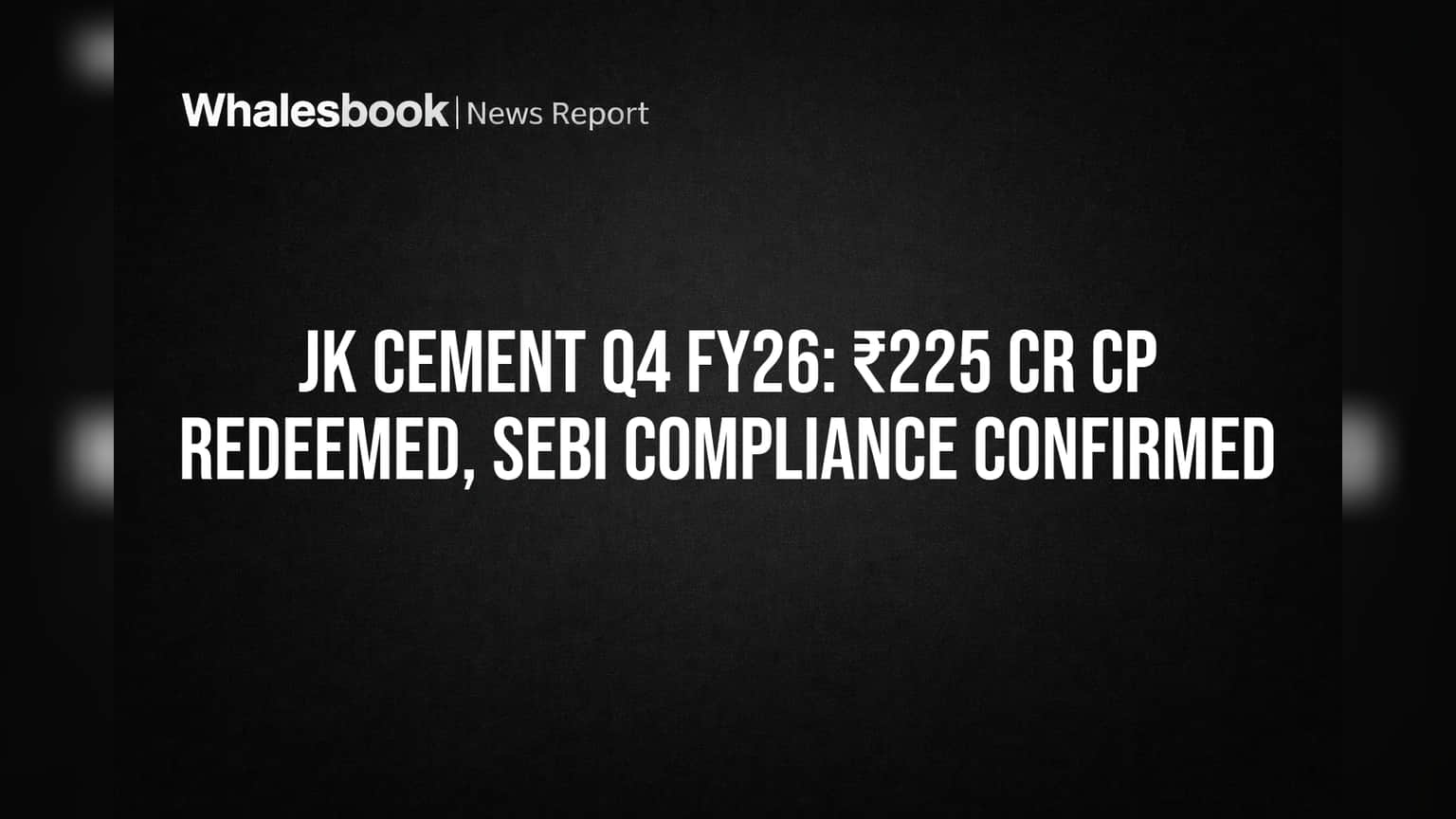 JK Cement submitted a certificate to the exchanges regarding its Commercial Paper (CP) usage for the quarter that ended March 31, 2026. The filing confirms the company met SEBI's requirements. During this period, JK Cement did not issue any new CPs but redeemed ₹225 crore of existing ones.
