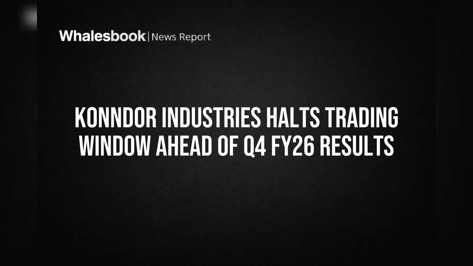 Konndor Industries Limited will close its trading window for designated persons, including directors and employees, starting April 1, 2026. This is a standard regulatory measure ahead of the company's announcement of its fourth-quarter and annual audited financial results for the fiscal year ending March 31, 2026. The window is scheduled to reopen 48 hours after the official declaration of these results.
