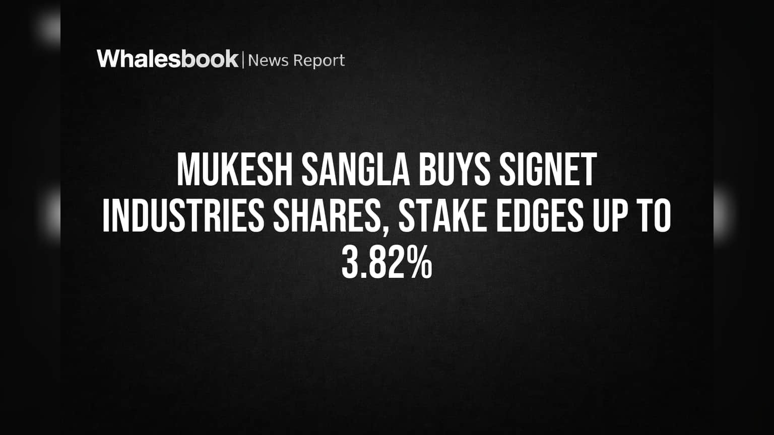 Promoter Mukesh Sangla Increases Stake in Signet Industries to 3.82%