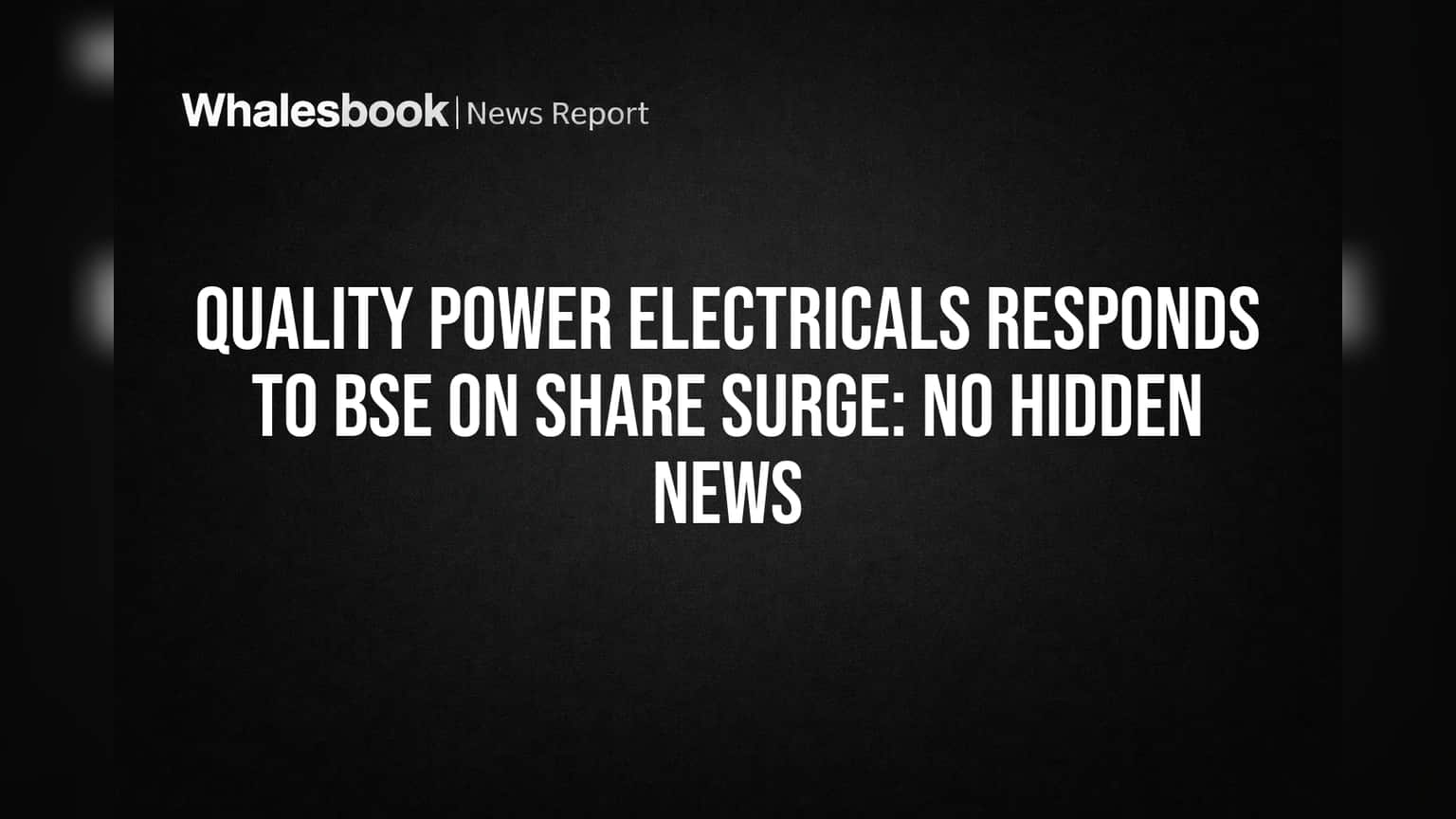 Quality Power Electricals Limited has responded to a query from the BSE regarding an unusual surge in its share price and trading volume. The company stated it has made all required disclosures under SEBI regulations and confirmed no undisclosed price-sensitive information is influencing the stock.