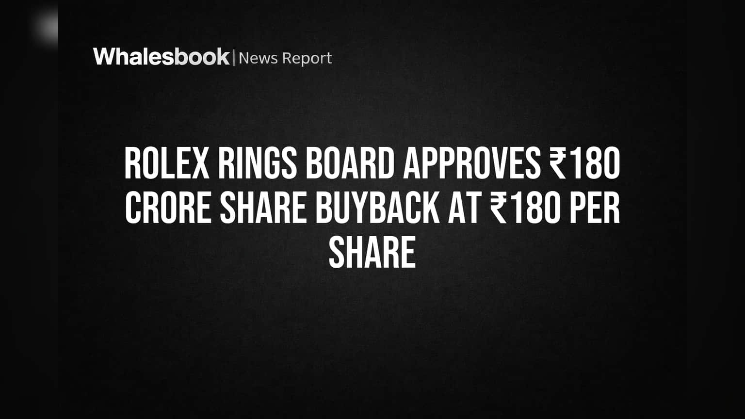 Rolex Rings Board Approves ₹180 Crore Share Buyback