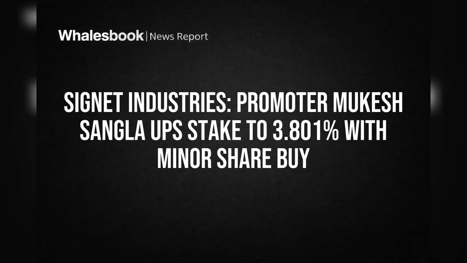 This transaction brings his total shareholding to 1,118,925 shares, representing 3.801% of the company's total voting capital. The total equity share capital of Signet Industries remains 29,437,000 shares.