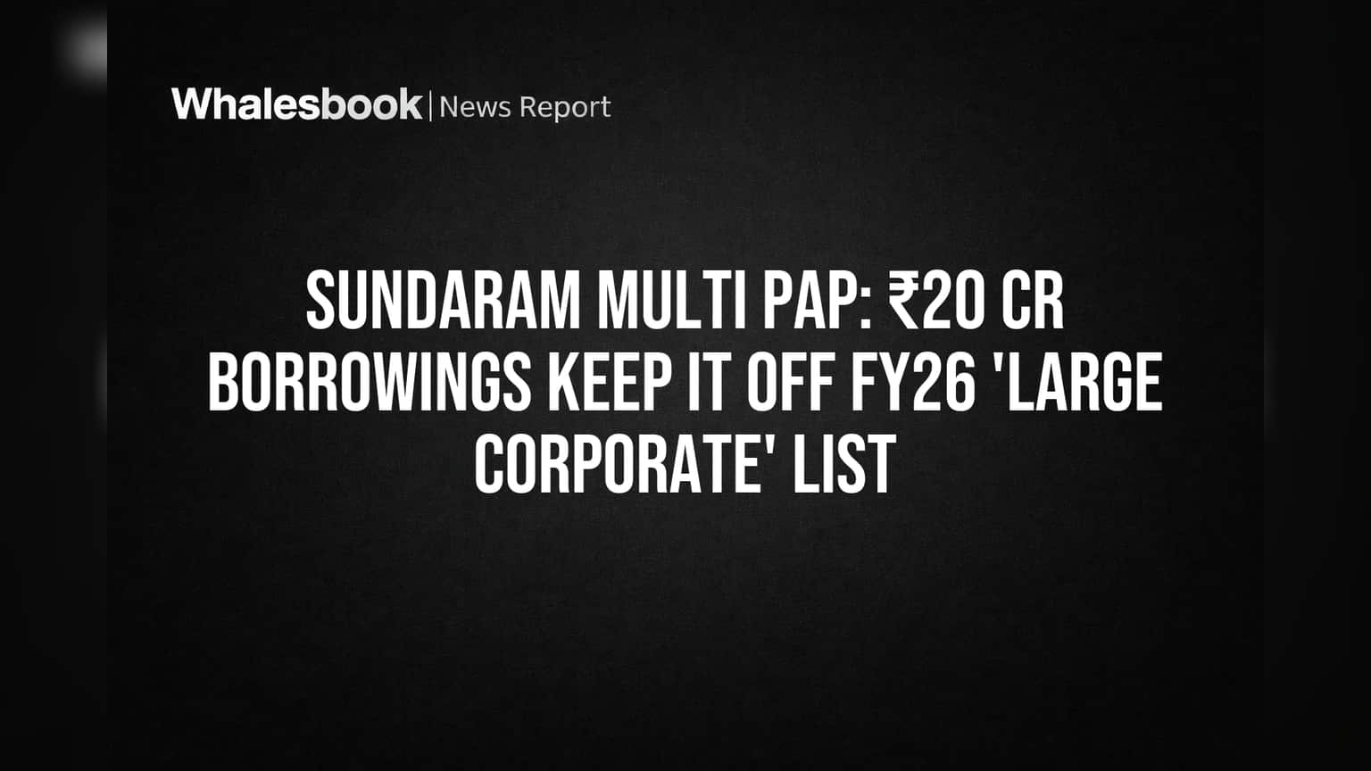 Sundaram Multi Pap Limited has confirmed it will not be classified as a 'Large Corporate' for the financial year ending March 31, 2026. This status is due to the company reporting outstanding borrowings of ₹20.02 crore as of that date, falling below the thresholds set by SEBI.