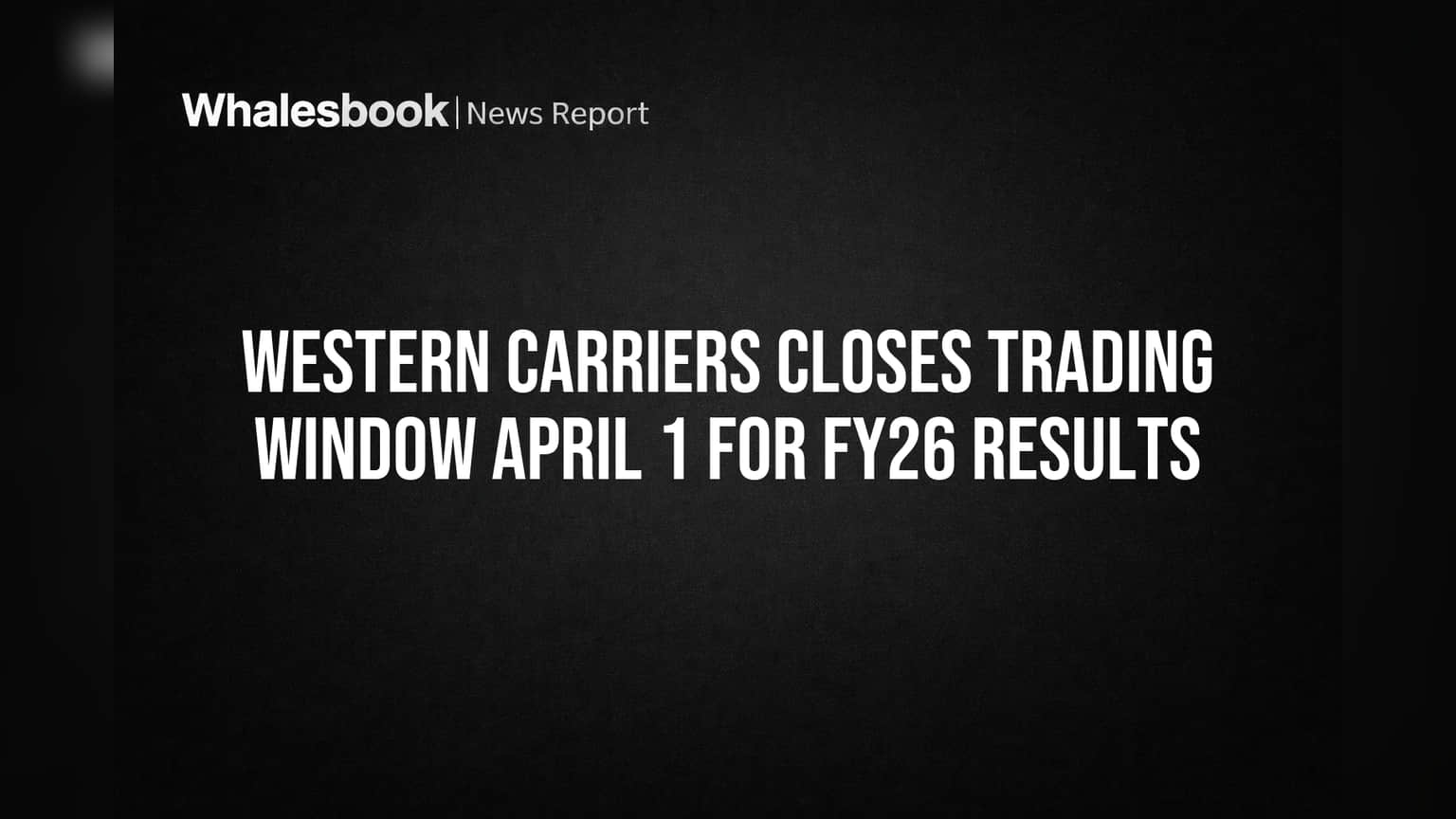 Western Carriers (India) Ltd. will close its trading window for designated employees and their close relatives starting April 1, 2026. This measure aligns with SEBI regulations and is implemented ahead of the company announcing its audited financial results for the fiscal year ended March 31, 2026.