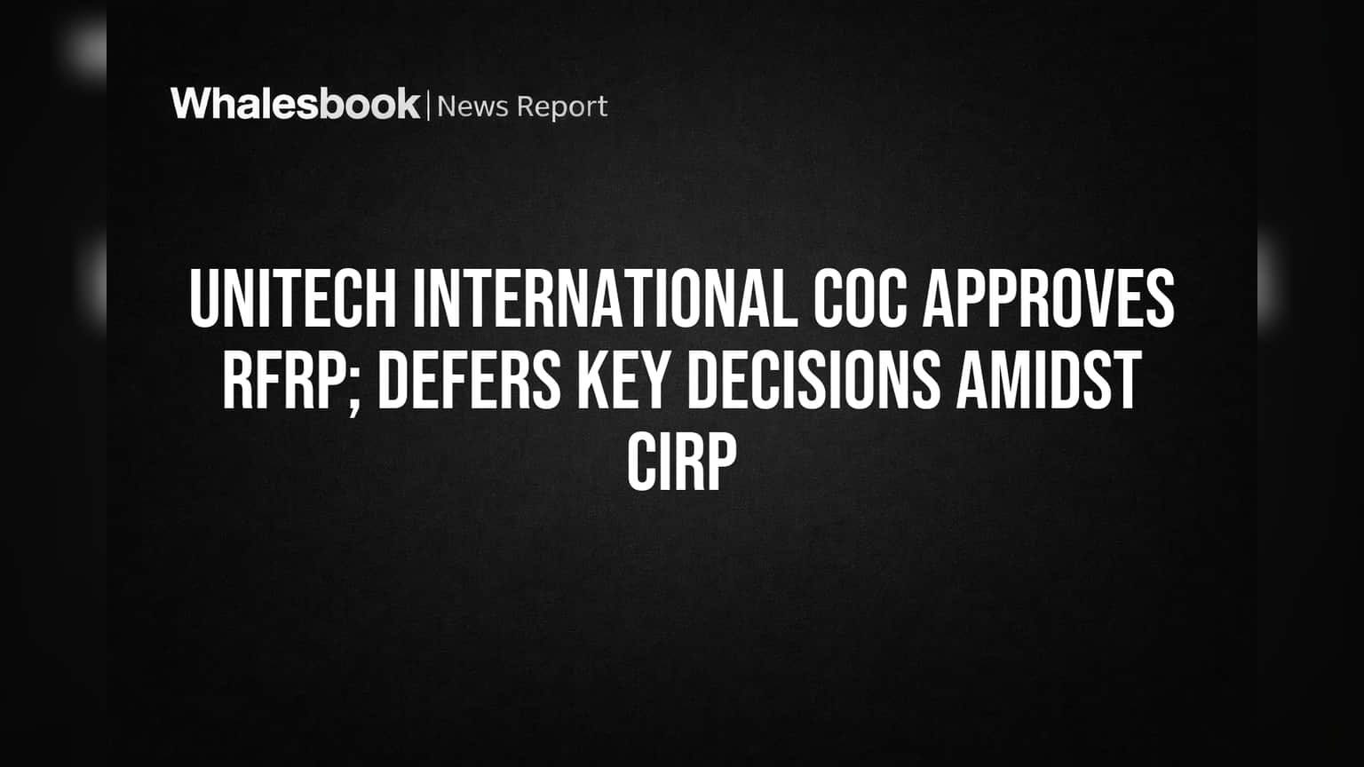 Unitech International Ltd's Committee of Creditors (CoC) unanimously approved the Request for Resolution Plan (RFRP) and its evaluation criteria on March 24, 2026. However, several key agenda items, including the appointment of legal counsel and a statutory auditor, were postponed.