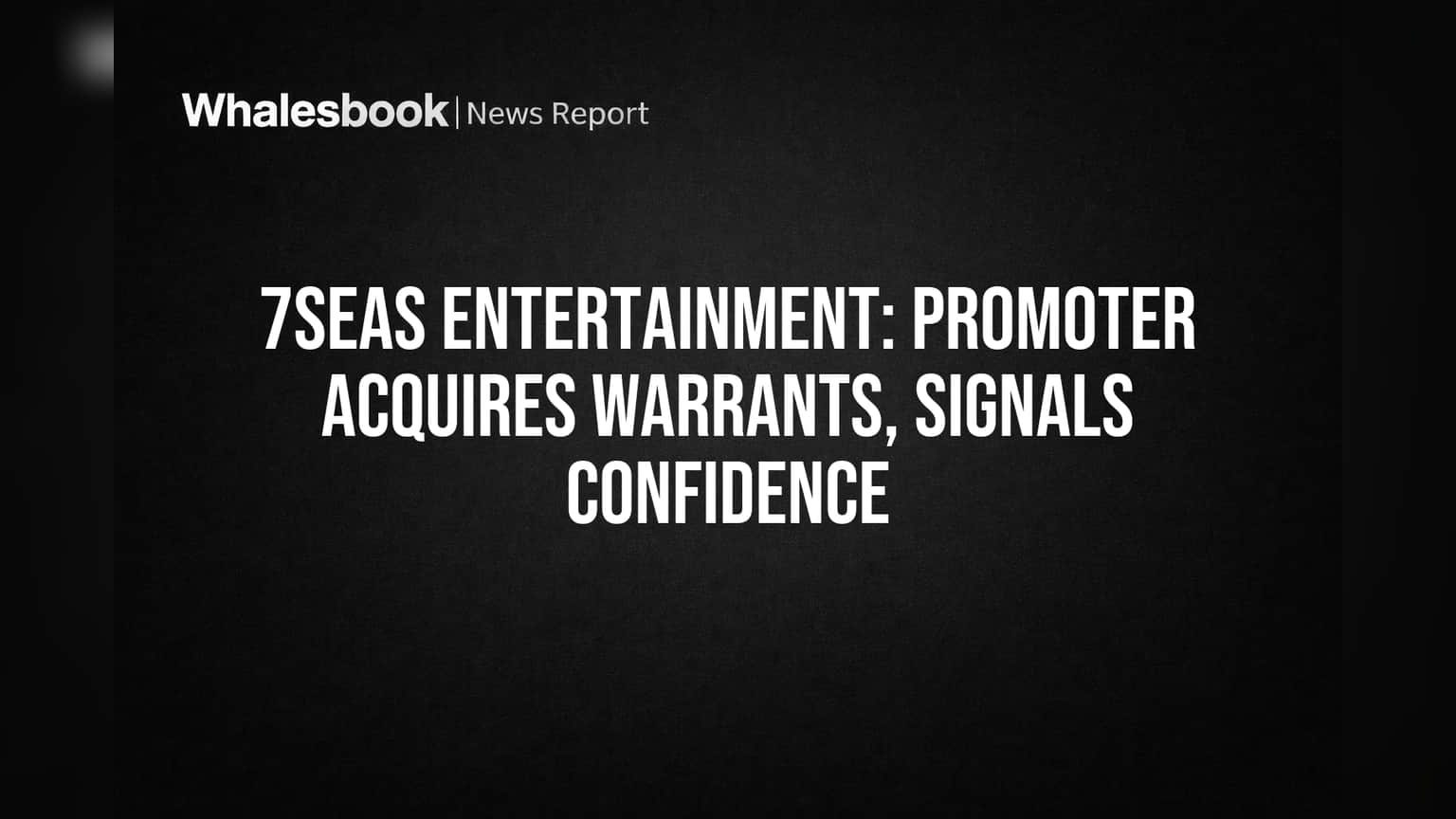 7Seas Entertainment Promoter Buys Warrants
