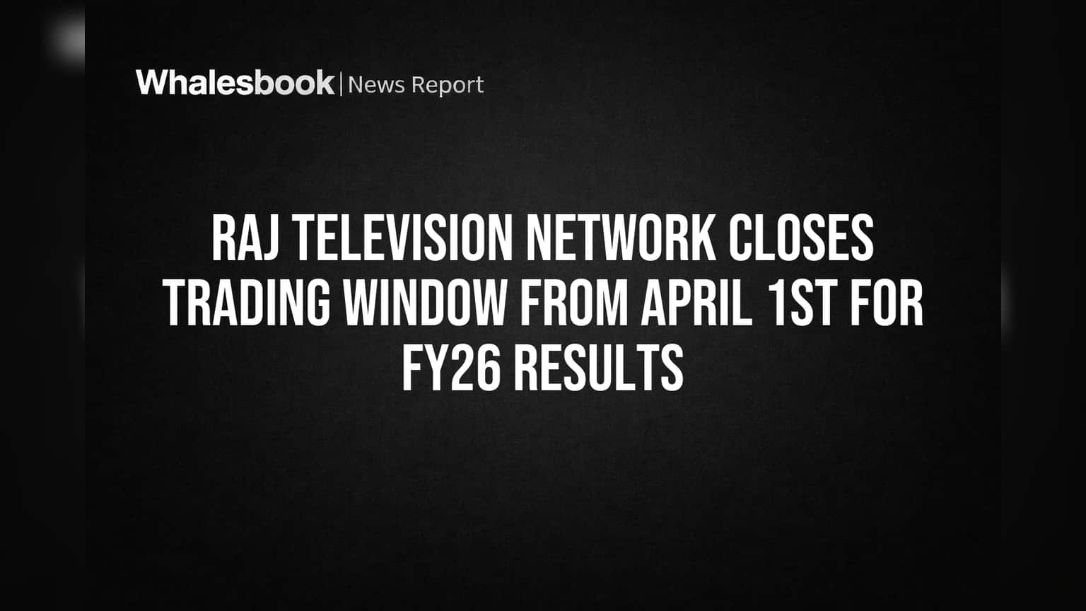 The trading window for Raj Television Network Limited shares will be shut starting April 1, 2026. This closure is a standard compliance measure to prevent insider trading.