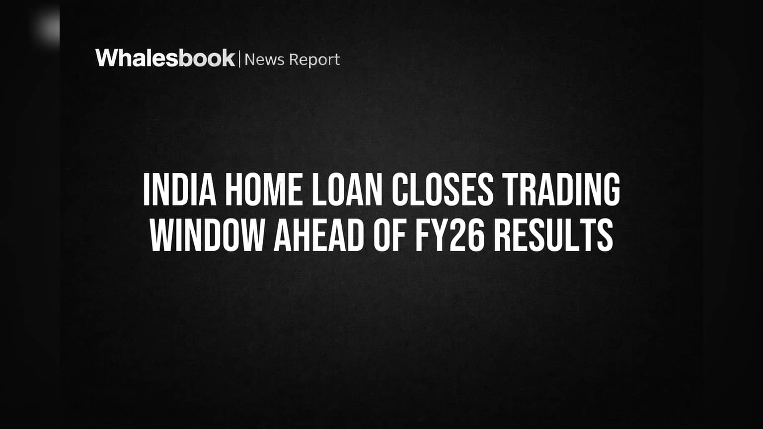 The trading window for India Home Loan Limited will be shut from April 1, 2026, until 48 hours after the announcement of its audited financial results for the fourth quarter and the full fiscal year 2026.