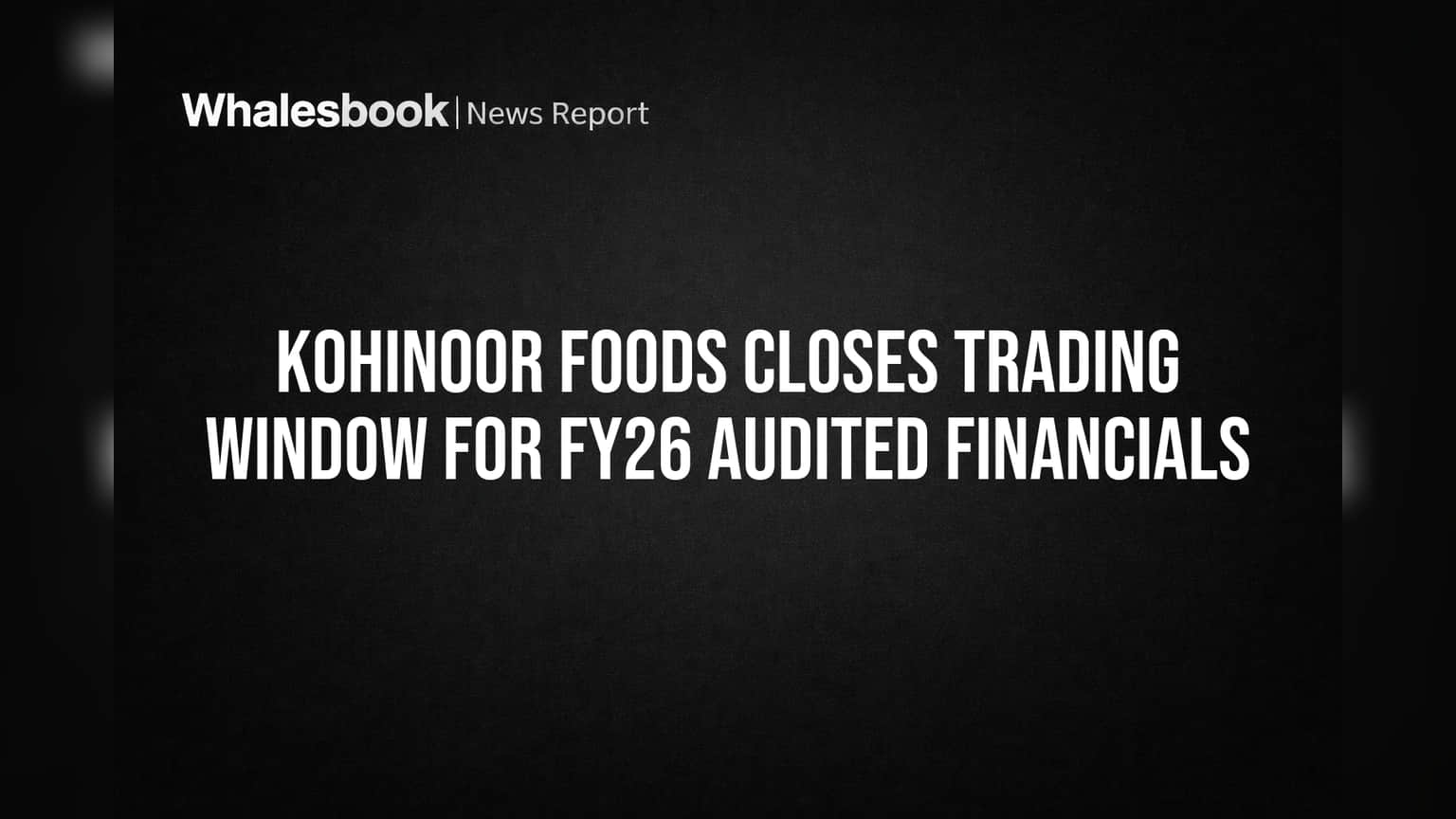 Kohinoor Foods Limited will close its trading window for directors, designated employees, and their immediate relatives starting April 1, 2026. The window will reopen 48 hours after the company announces its audited financial results for the fiscal year ending March 31, 2026.