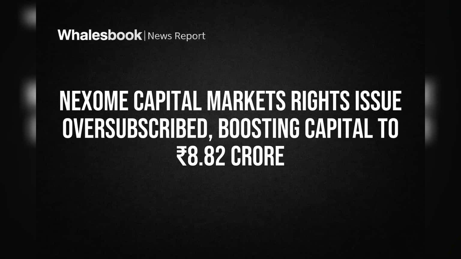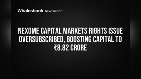 Nexome Capital Markets Limited has successfully completed a Rights Issue that was oversubscribed by 100.79%, raising ₹22.04 crore. The company approved the allotment of 29,38,500 equity shares, boosting its paid-up share capital to ₹8.82 crore.