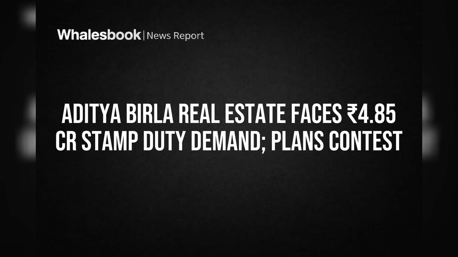Aditya Birla Real Estate Ltd has received an order from the Madhya Pradesh Revenue Board demanding approximately ₹4.85 crore in additional stamp duty and registration fees. This aggregate demand includes ₹2.60 crore for land value and ₹2.25 crore for plant and machinery.
