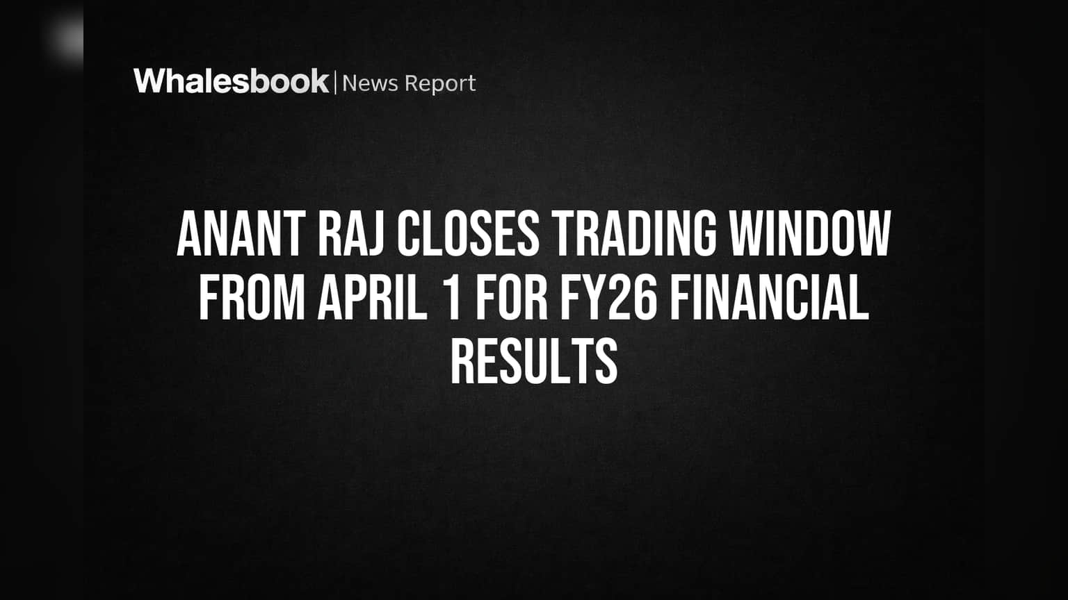 Anant Raj Limited is temporarily closing its trading window for designated individuals, including directors, employees, and their immediate relatives. This restriction begins April 1, 2026, and will last until 48 hours after the company announces its Q4 and full fiscal year 2026 financial results. The company is taking this step as required by SEBI's Prohibition of Insider Trading Regulations, 2015.