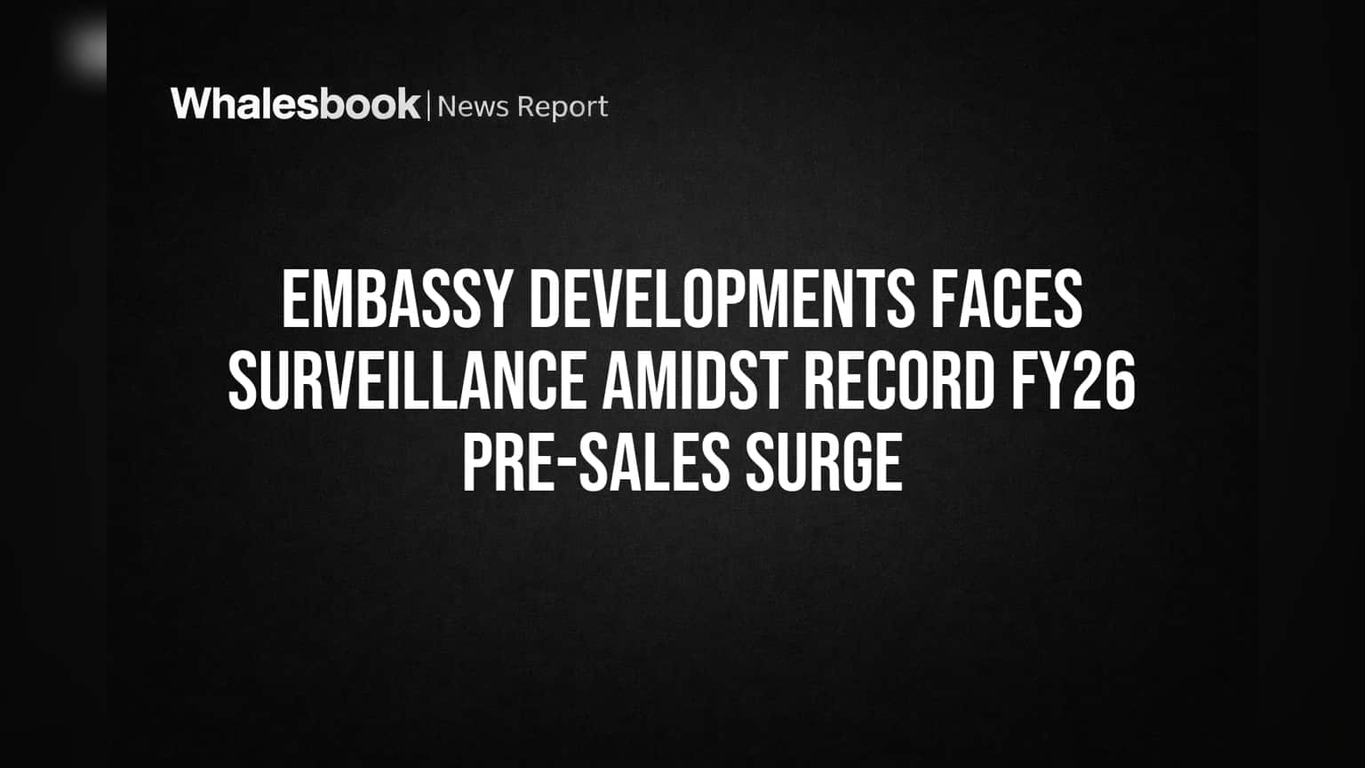 Embassy Developments has announced record pre-sales for the fourth quarter of FY26, reaching ₹2,632 crore. This surge contributed to a 128% year-on-year increase for the full fiscal year, with FY26 pre-sales hitting ₹4,631 crore. However, the company's shares have been placed under temporary stock exchange surveillance due to recent price volatility.