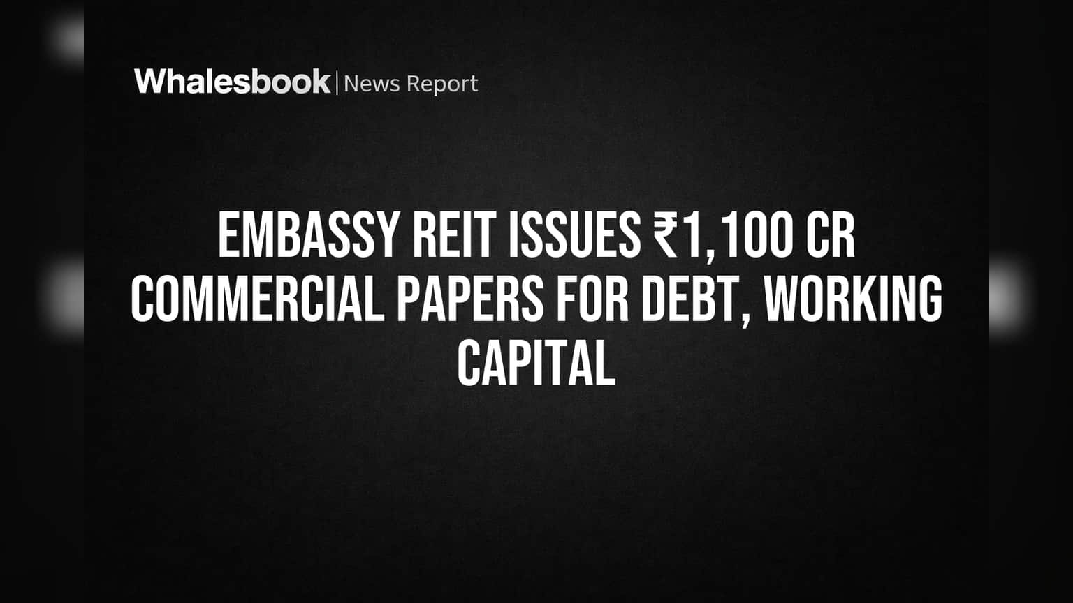 The issuance is split into two parts: ₹650 crore with a 347-day tenure and ₹450 crore with a 342-day tenure. Funds from these papers are designated for repaying existing debt and covering working capital needs for Embassy REIT, its Special Purpose Vehicles (SPVs), and Holdco.