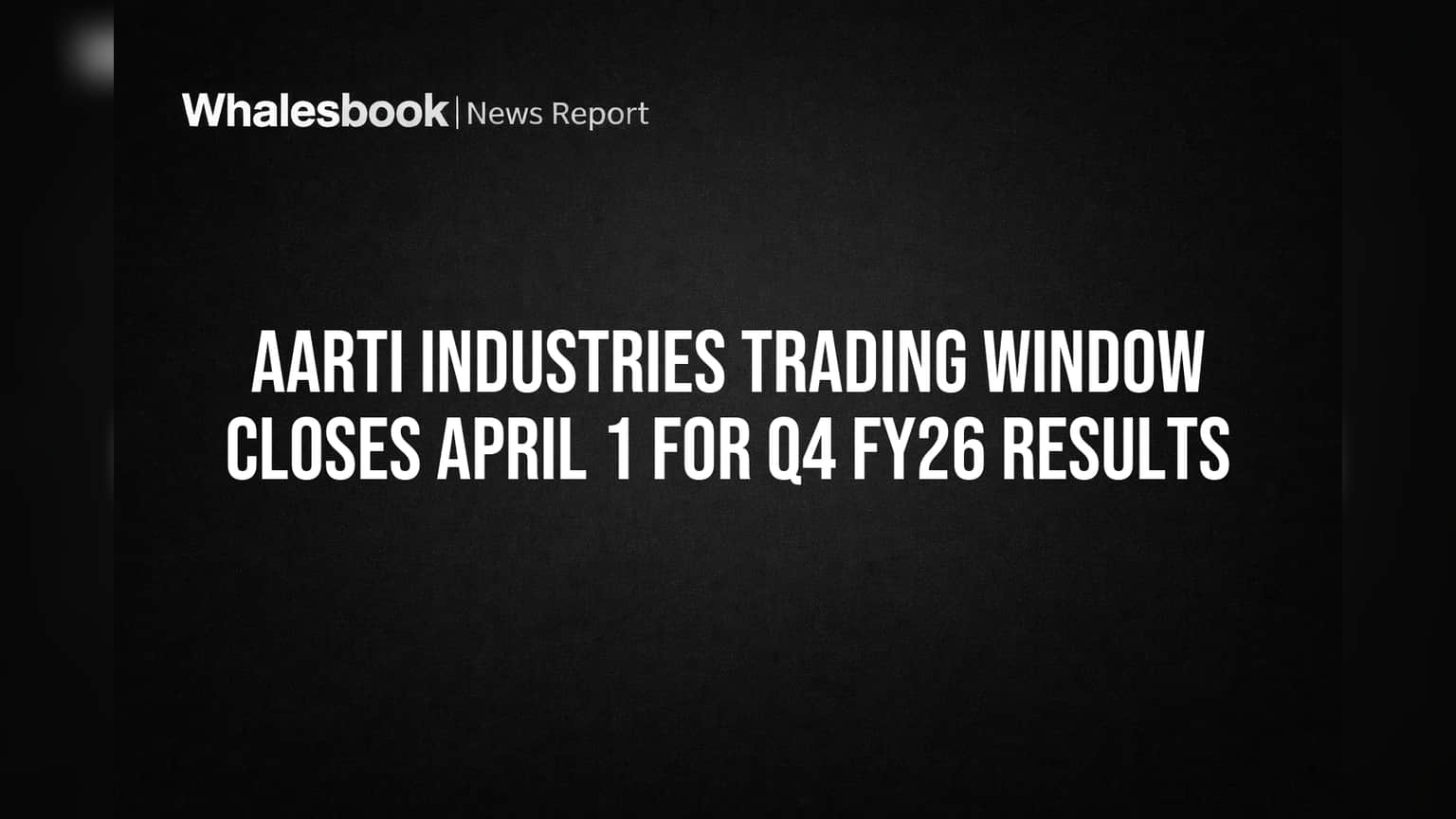 Aarti Industries Limited will close its trading window starting April 1, 2026. The window will reopen 48 hours after the company announces its financial results for the quarter and full year ended March 31, 2026. This is a standard regulatory step under SEBI rules to prevent insider trading by company insiders.