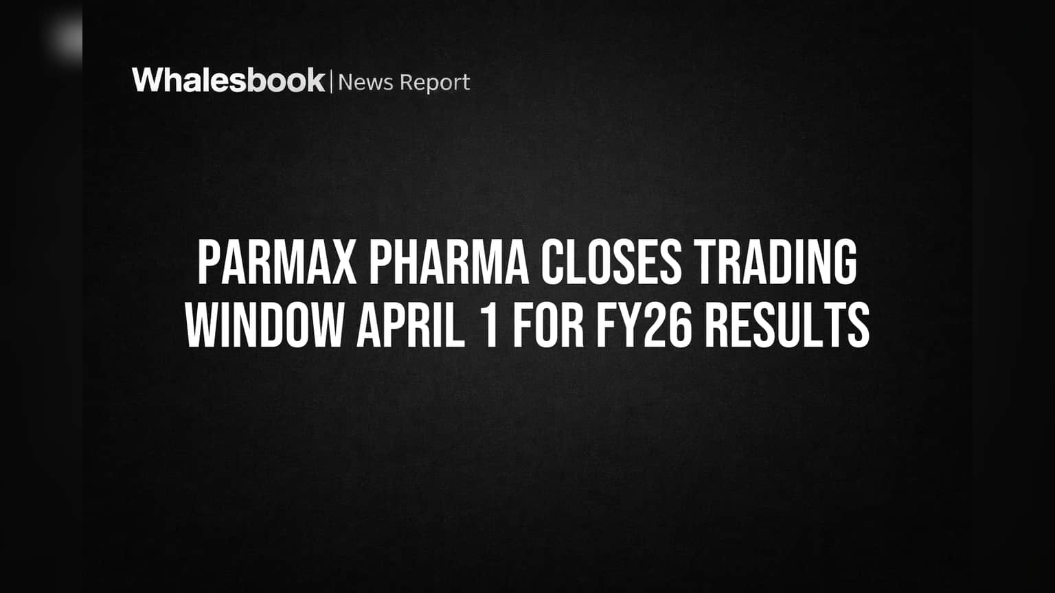 Parmax Pharma Limited announced it will close its trading window for designated persons starting April 1, 2026. This measure precedes the company's upcoming announcement of its financial results for the quarter and fiscal year ending March 31, 2026.