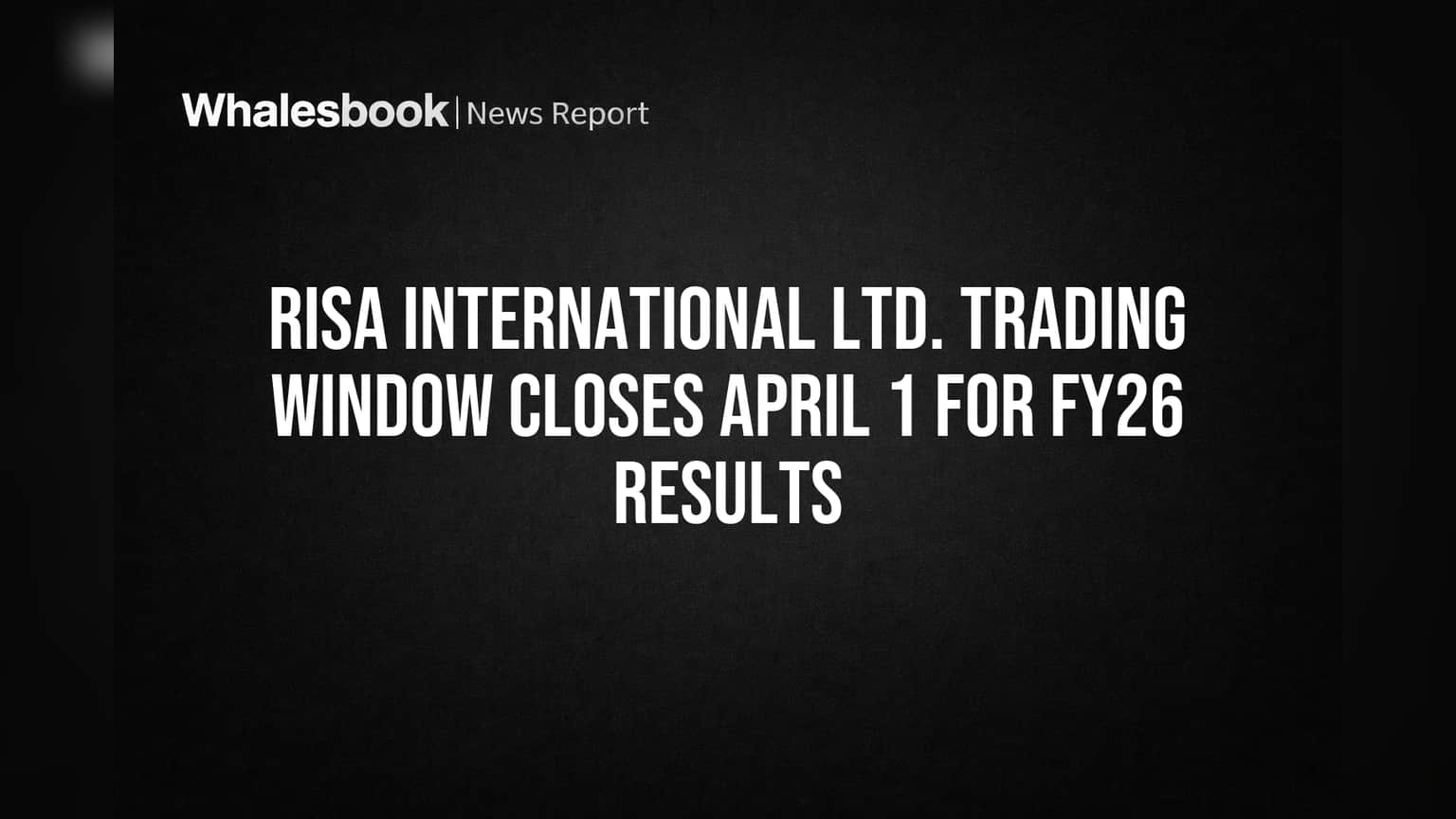 Risa International Ltd. has announced that its trading window for designated persons, employees, directors, and key management personnel will be closed starting April 1, 2026. This restriction will remain in effect for 48 hours following the public announcement of the company's audited financial results for the fiscal year ending March 31, 2026.