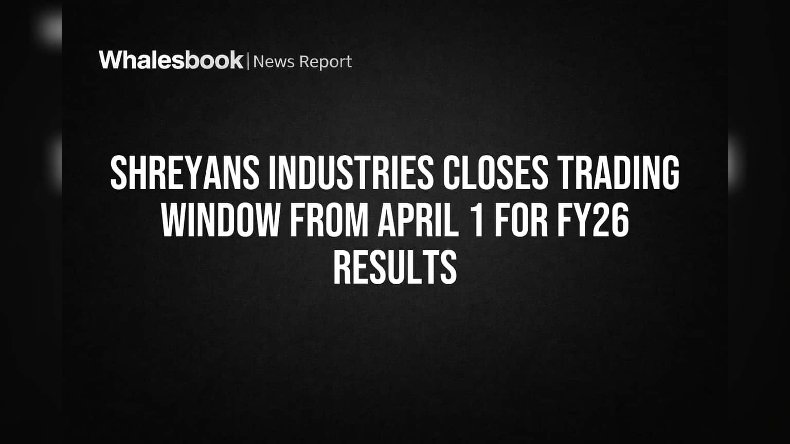 Company insiders, including promoters, directors, Key Managerial Personnel (KMPs), and designated employees, are prohibited from trading in Shreyans Industries shares starting April 1, 2026. This restriction is put in place ahead of the announcement of the company's financial performance for the fiscal year ended March 31, 2026.