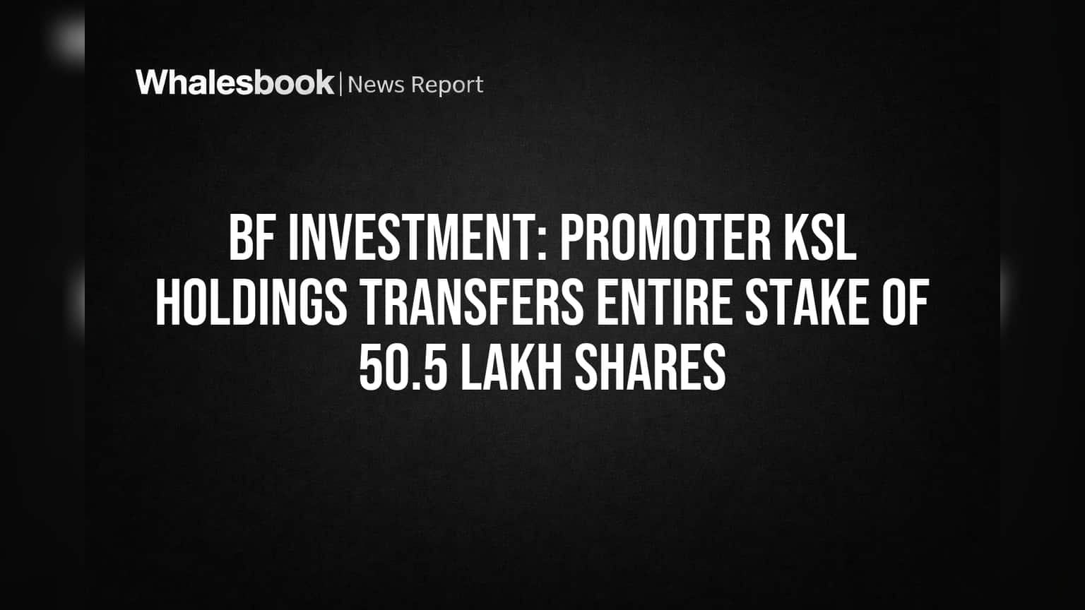 BF Investment Limited has seen a significant shift in its promoter ownership, with KSL Holdings Pvt Ltd transferring its entire stake. The move, effective March 24, 2026, saw KSL Holdings divest 50,54,091 equity shares, representing 13.42% of the company's voting capital.