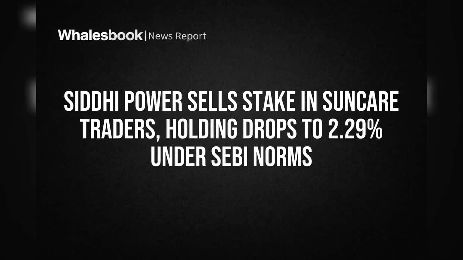 Prior to this transaction, Siddhi Power Limited held 5.00% of Suncare Traders' equity. Previous reports indicated Siddhi Power held around 4.45% in late 2025. Suncare Traders had a market capitalization of approximately ₹15-20 crore in March 2026, with its share price trading around ₹0.59-₹0.65. The company also has a low promoter holding of 4.29%.