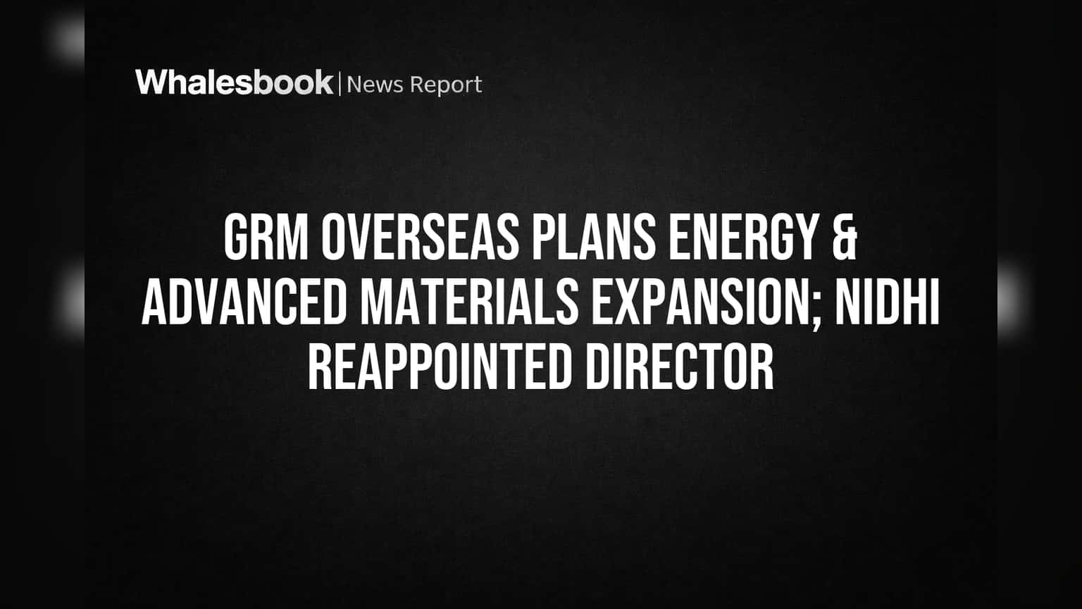 GRM Overseas Limited's board has approved expanding its business scope to include sustainable energy solutions and advanced materials. Mrs. Nidhi has also been re-appointed as an Independent Director for a second five-year term.