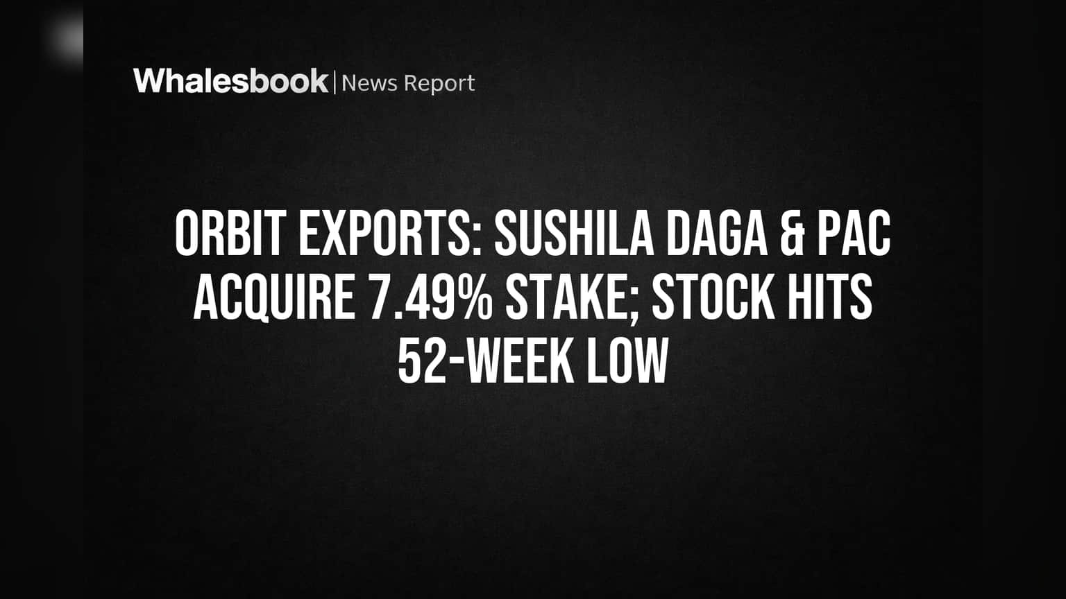 Orbit Exports Limited has announced that Sushila Daga, acting in concert with other parties including the Kaushik Daga Family Trust, acquired 11,85,653 equity shares. This off-market transaction increases their aggregate shareholding in the company to 7.49%, representing 4.47% of the total paid-up capital. The acquisition was effective March 27, 2026, and reported on March 29, 2026, in line with SEBI's substantial acquisition regulations. The company's total paid-up equity share capital is Rs 26,51,11,520, divided into 2,65,11,152 shares of Rs 10 each.