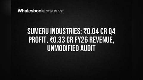 Sumeru Industries Ltd. has released its audited financial results for the fiscal year ended March 31, 2026. The company reported a Q4 FY26 profit of ₹0.04 Cr on revenues of ₹0.08 Cr, showing a strong quarterly performance. For the full fiscal year FY26, revenues reached ₹0.33 Cr with a net profit of ₹0.03 Cr.