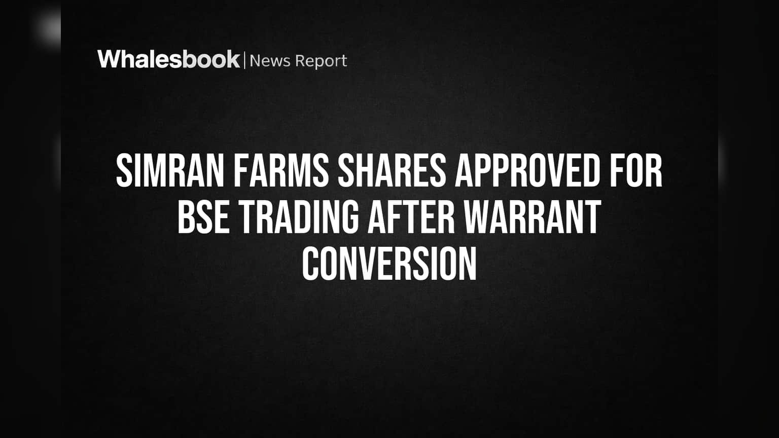 Simran Farms Limited को बॉम्बे स्टॉक एक्सचेंज (BSE) से 10,18,300 नए शेयरों की लिस्टिंग के लिए प्रारंभिक मंज़ूरी मिल गई है। ये वे शेयर हैं जिन्हें कनवर्टेड वारंट्स (Converted Warrants) के ज़रिए प्राइवेट प्लेसमेंट (Private Placement) के तहत जारी किया गया था।