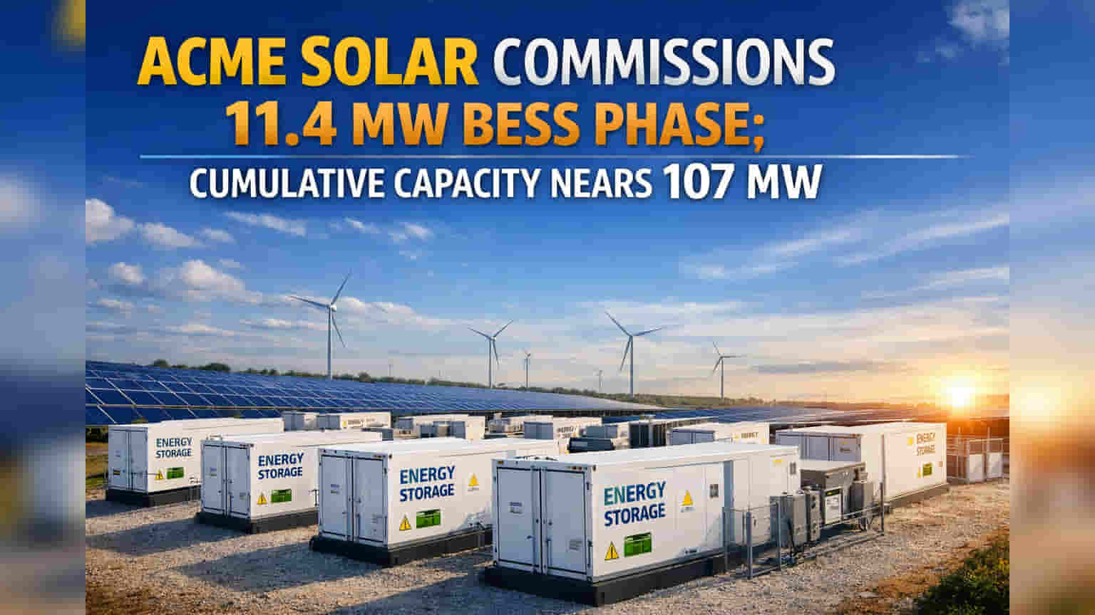 ACME Surya Power Private Limited, जो ACME Solar Holdings Limited की ही एक सब्सिडियरी है, ने अपने बैटरी एनर्जी स्टोरेज सिस्टम (BESS) प्रोजेक्ट के तीसरे फेज की शुरुआत की है। इस फेज से 11.429 MW की पावर और 51.354 MWh की स्टोरेज कैपेसिटी मिली है। कंपनी ने 29 मार्च, 2026 को इस डेवलपमेंट की घोषणा की। राजस्थान के Jaimalsar में स्थित यह प्रोजेक्ट, कुल 250 MW / 1103.392 MWh की एक बड़ी पहल का हिस्सा है। इस नए फेज के चालू होने के बाद, कंपनी की कुल कमीशन की गई BESS कैपेसिटी अब 107.143 MW और 481.440 MWh हो गई है। इस फेज के लिए कमर्शियल ऑपरेशन की तारीख 31 मार्च, 2026 तय की गई है, जो प्रोजेक्ट को समय पर पूरा करने की दिशा में एक मजबूत कदम है।